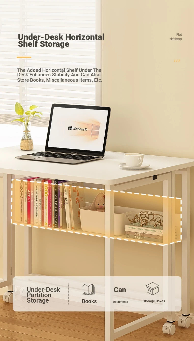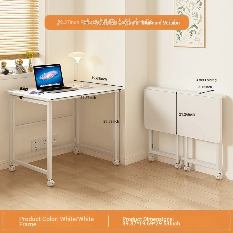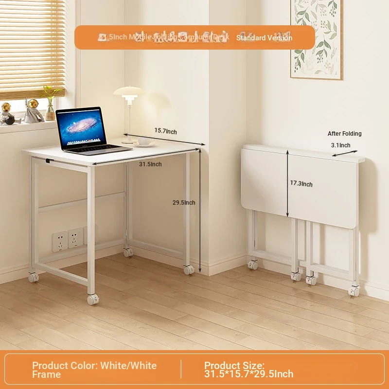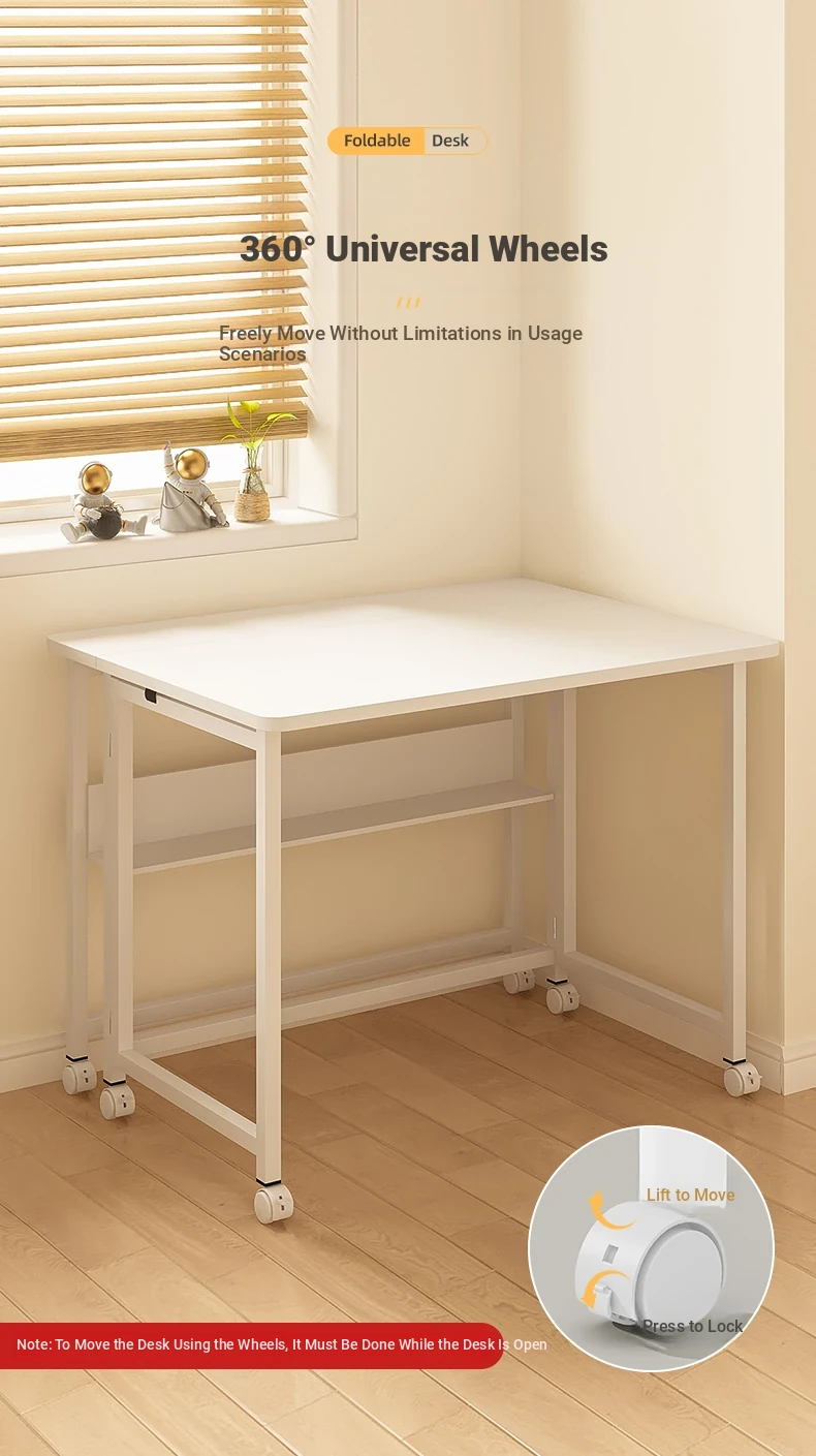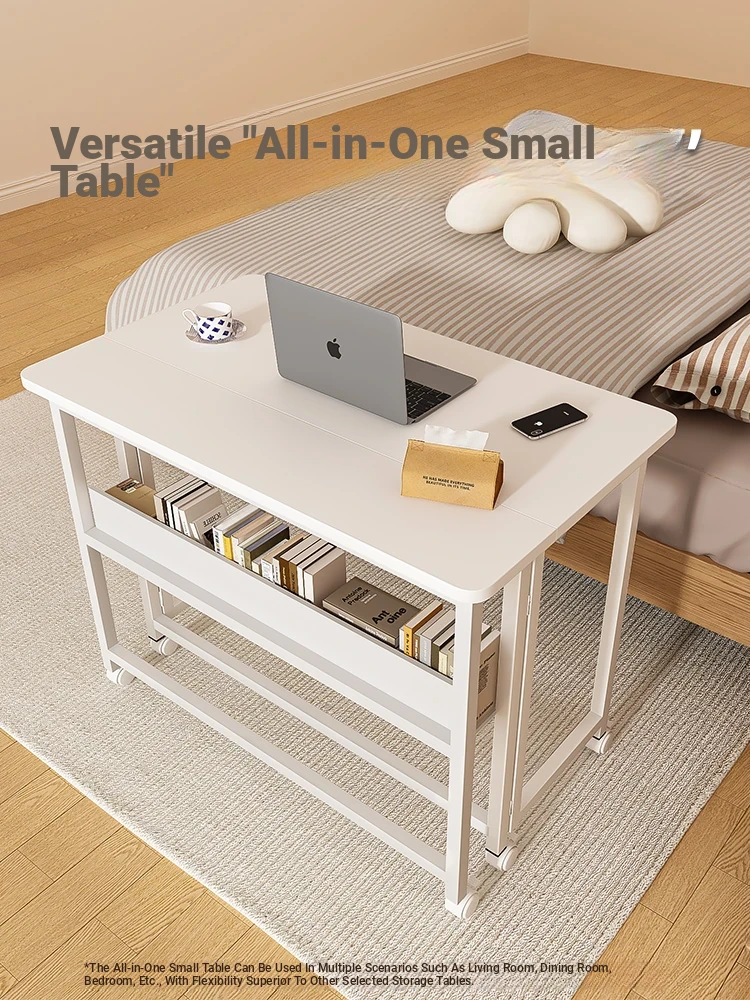 Portable Folding Laptop Desk with Wheels - Ideal for Students and Home Office, Versatile Side Table for Bedroom, Living Room, and Couch