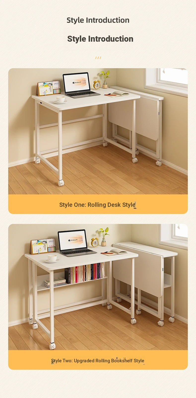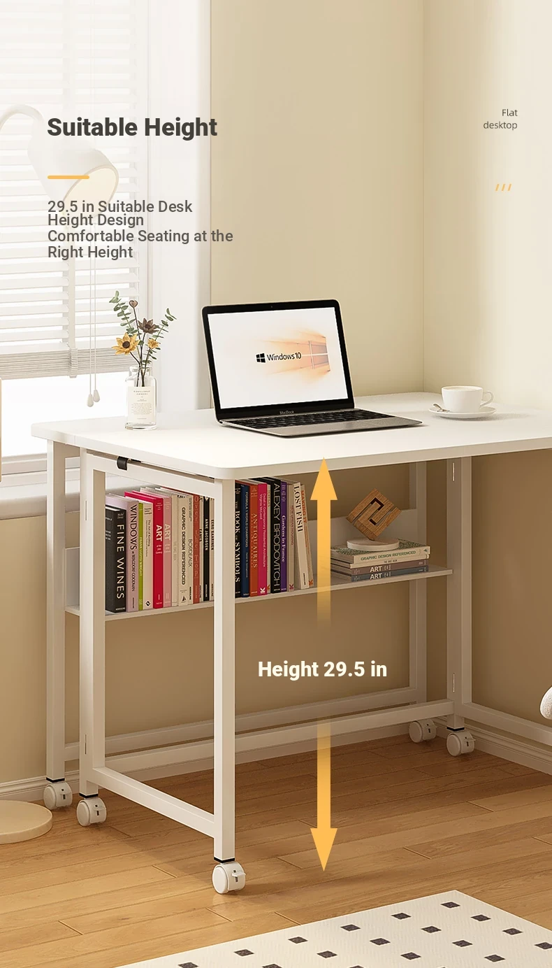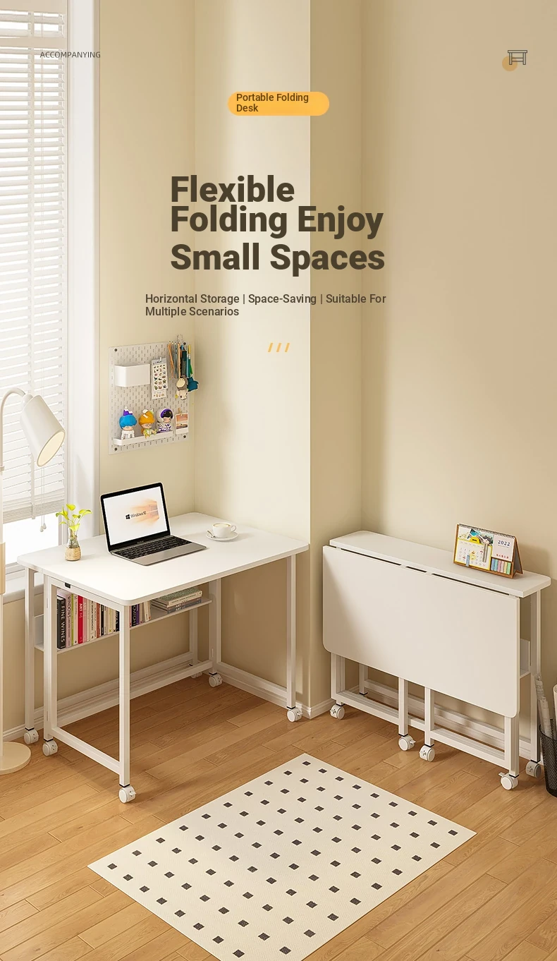 Portable Folding Laptop Desk with Wheels - Ideal for Students and Home Office, Versatile Side Table for Bedroom, Living Room, and Couch