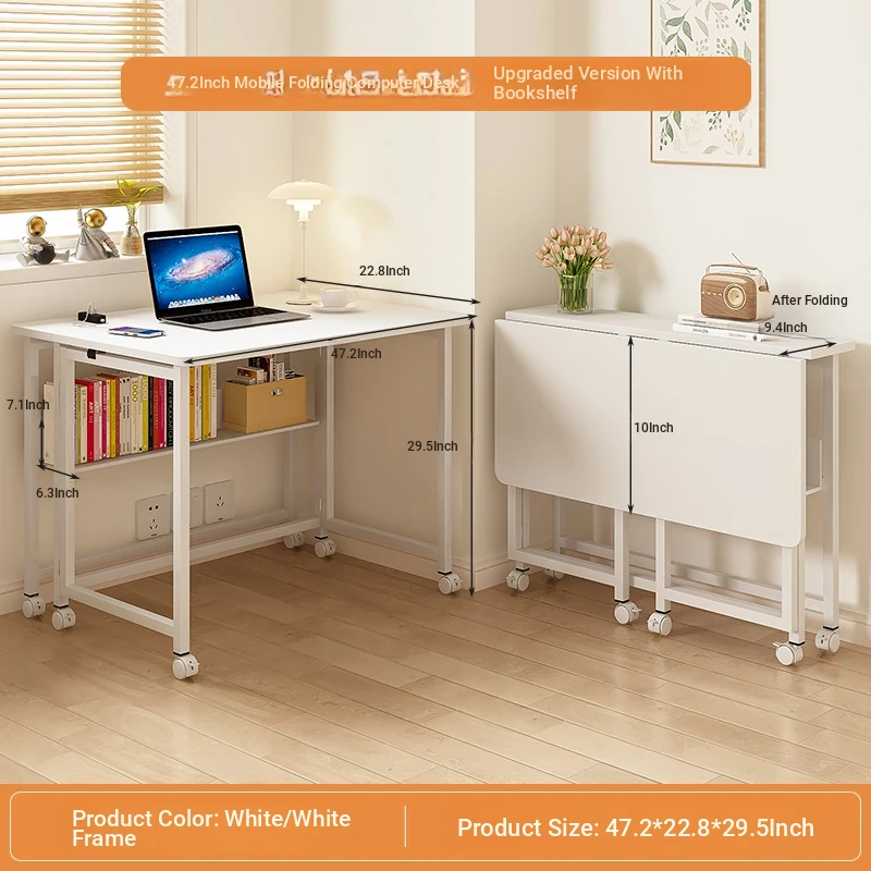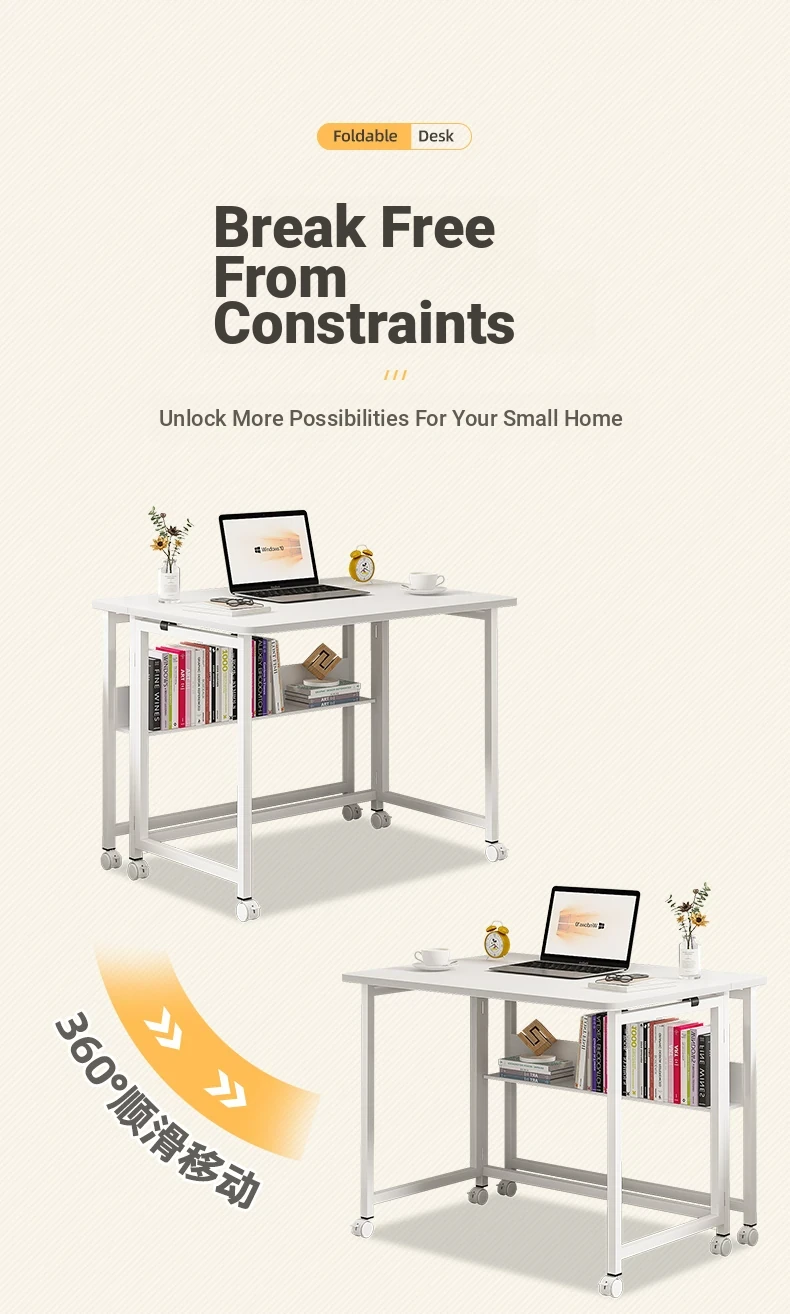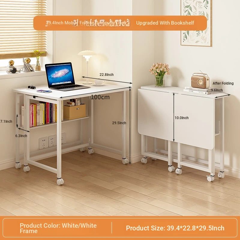 Foldable movable [single table + bookshelf] 100*58