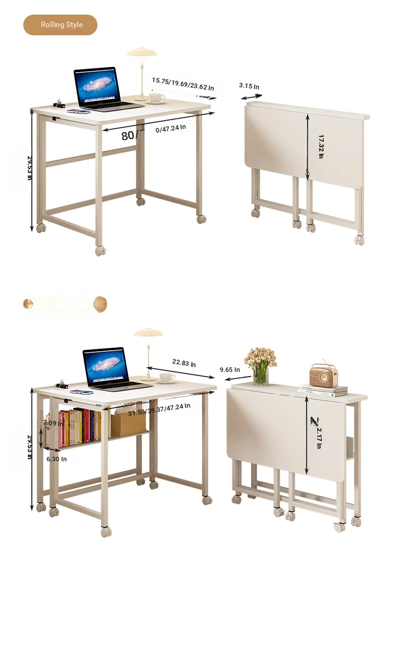 Foldable movable [single table + bookshelf] 80*58