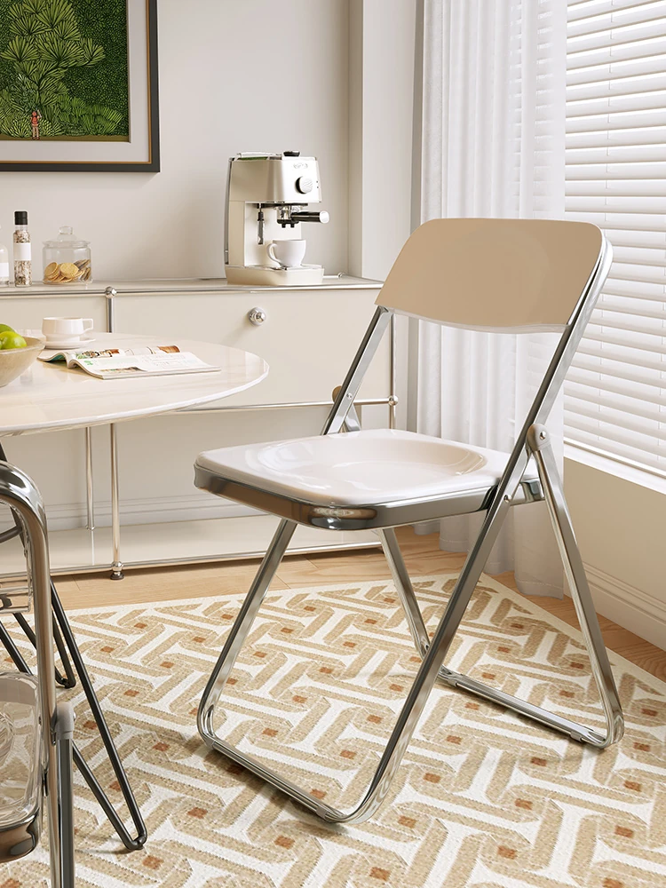 クリアアクリル折りたたみ椅子 - ファッション店の撮影に最適!おしゃれなインスタ風のデザインで、家庭用にもぴったりなシンプルなダイニングチェア。おしゃれと機能性を兼ね備えた一品です!