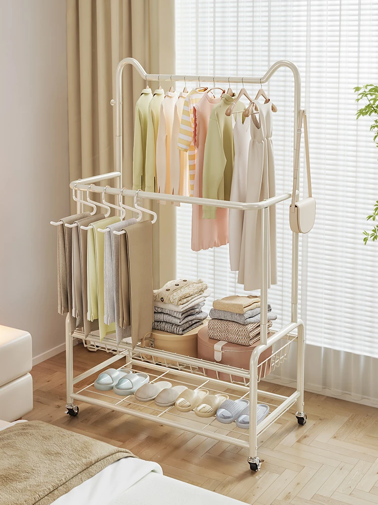 寝室の省スペース!多機能移動式2段ハンガーラック - ベッドサイドに最適な衣類収納、夜の衣服をスマートに置ける便利アイテム!