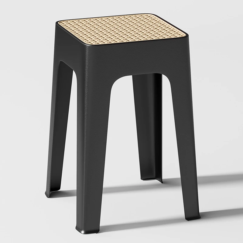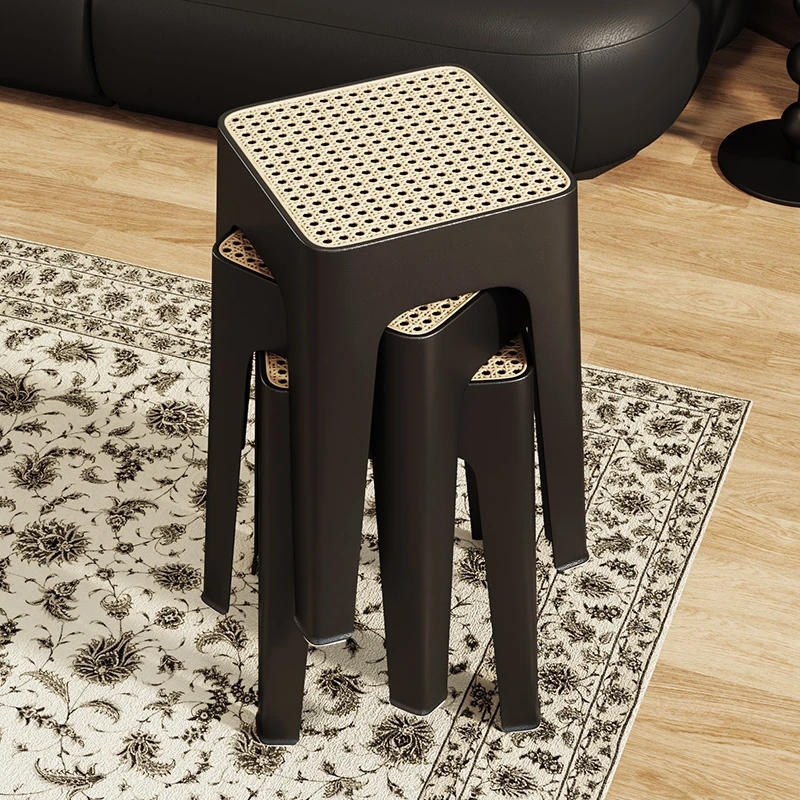 現代的でスタイリッシュな厚手プラスチック製スツール!省スペース設計で重ねて収納可能、リビングやダイニングに最適なラタン風デザインの四角いスツール。おしゃれで実用的なインテリアアイテムをお見逃しなく!
