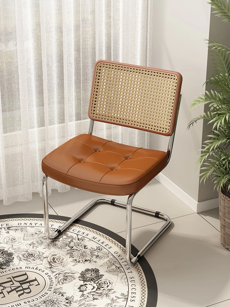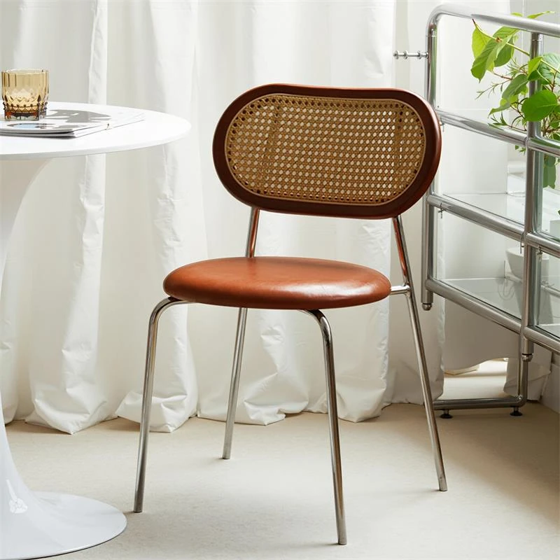 北欧スタイルのラタン編みダイニングチェア - 軽やかな贅沢感漂う、家庭用・中古・カフェ風のリラックスチェア。実木製の背もたれが心地よい座り心地を提供し、インスタ映えする宿泊施設にも最適です!