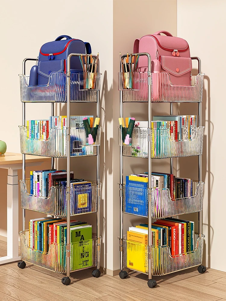 子供用防塵書棚 - フロアスタンド式本棚、デスク下収納キャビネット、マルチレイヤー家庭用書籍収納ラック!お部屋をスッキリ整理し、学びの空間を魅力的に演出します。
